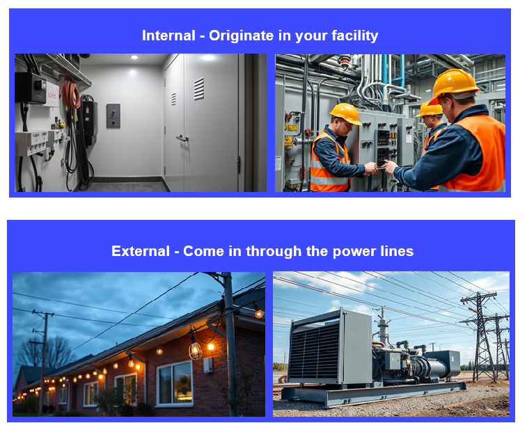 External problems are more complicated; they arise from a variety of sources, ranging from the VFD’s at the plant next door, to the rooftop solar in the subdivision that is fed from the same utility line as your plant. Solving these problems is time consuming to identify and expensive to solve.