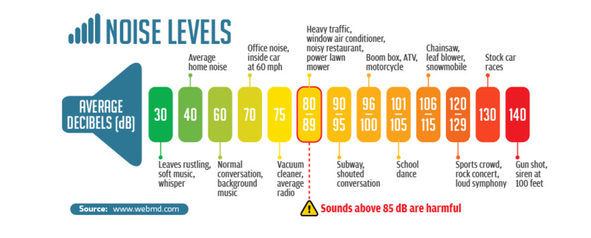 Generators are not whisper quiet; however, we utilize noise attenuating enclosures and will work closely with you to take advantage of natural noise abatement characteristics of your property. The following graph describes what you may hear with recognizable examples, and as a function of distance from the generator. Most generators have a noise level between 65 and 70 decibels at 20 feet.